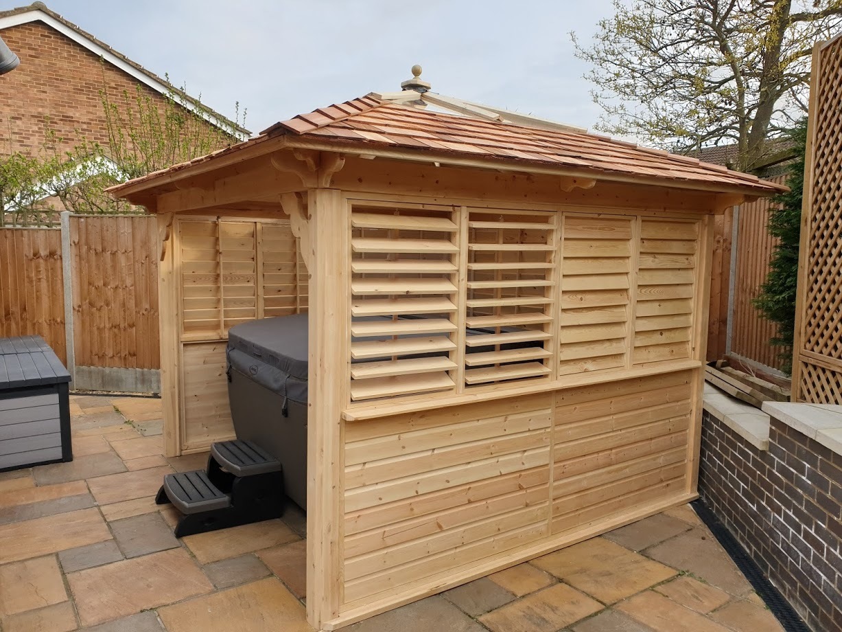 Versatile design options mean we can create a gazebo that is best suited to your space and won't take up too much of it. A wooden gazebo with sides, hot tub gazebo, louvred gazebo or cedar gazebo - designs and styles can be altered to suit your space, big or small. There are many different types of gazebo for you to choose from, in many shapes, sizes and styles, all available in a variety of materials suiting your budget.